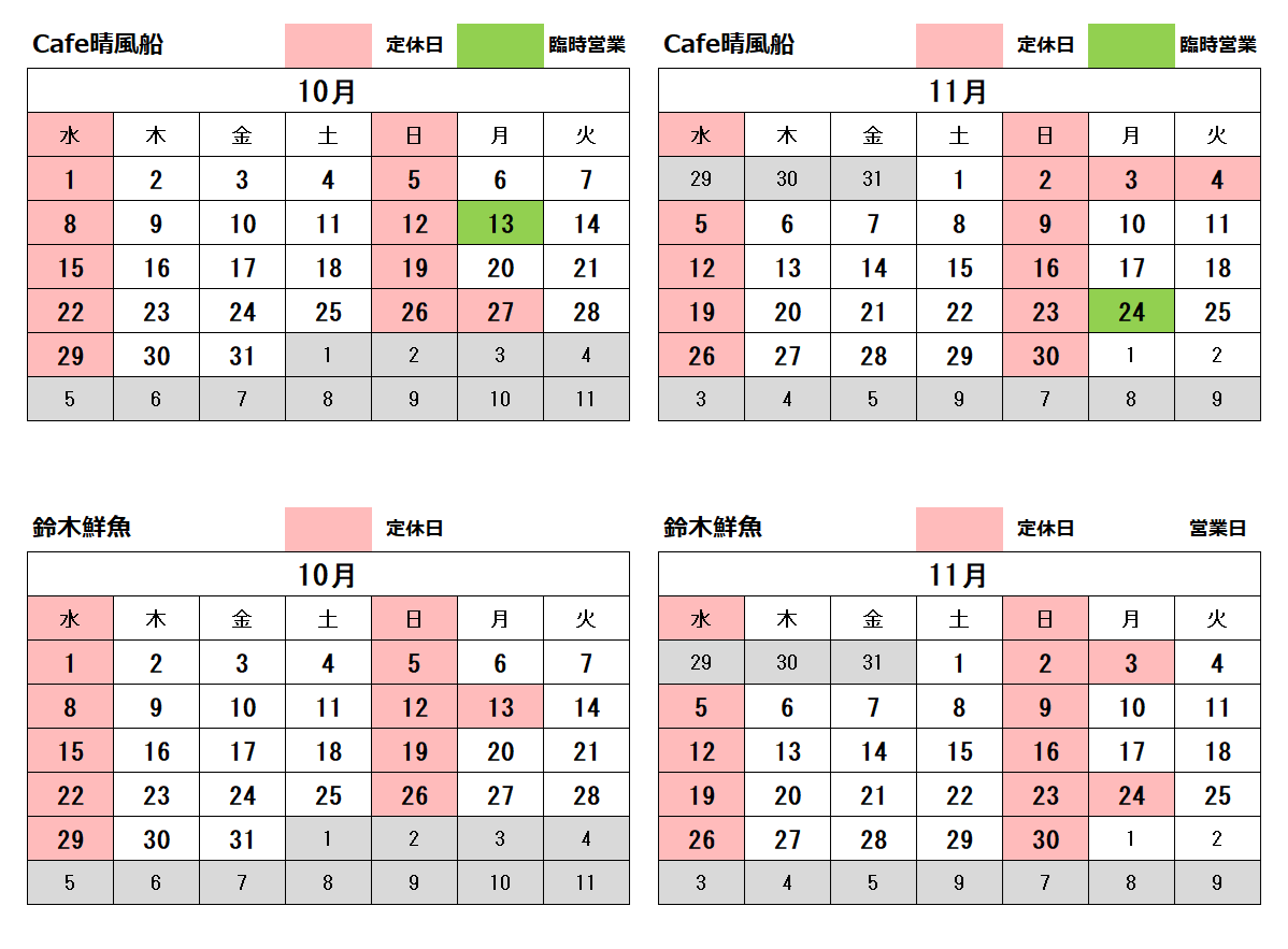 ※Cafe晴風船は、水・日曜が定休日です。